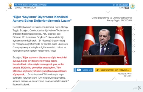 açıklamasına değinerek; “24 Nisan günü yayımladığı